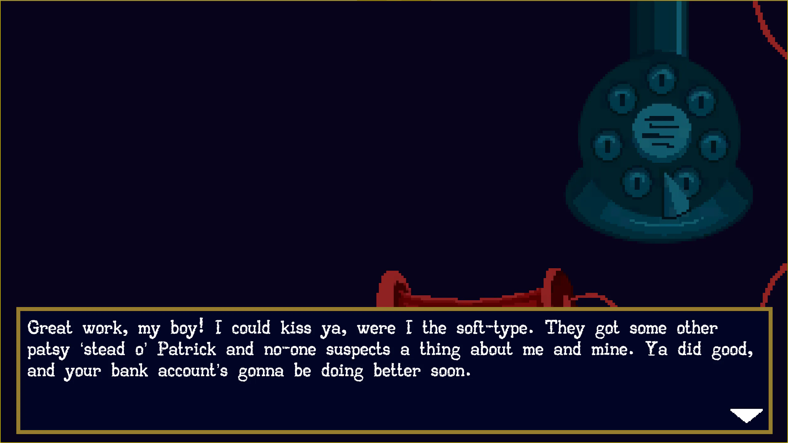Crime Or Punishment is a 2D isometric adventure game about corrupt detective Leo Faulker. As Faulker, the player is called to a crime scene, at the behest of the mafia, where they must alter evidence and fabricate clues to shift blame from mafia associate Patrick O’Dowd, and implicate another. The player can freely explore the ‘Sweet Rine’ speakeasy, and interact and change the crime scene as they see fit. Only when they leave will they discover if they have succeeded. Crime Or Punishment started as a submission to the 2023 GMTK Game Jam and since has been developed into a commercial demo.